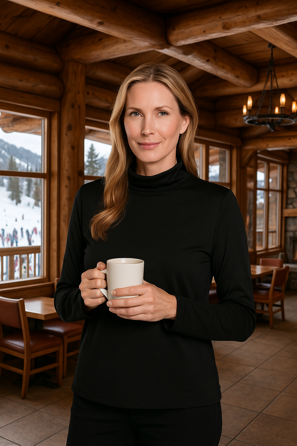 Lenora Long Sleeve Mock Neck Black Top