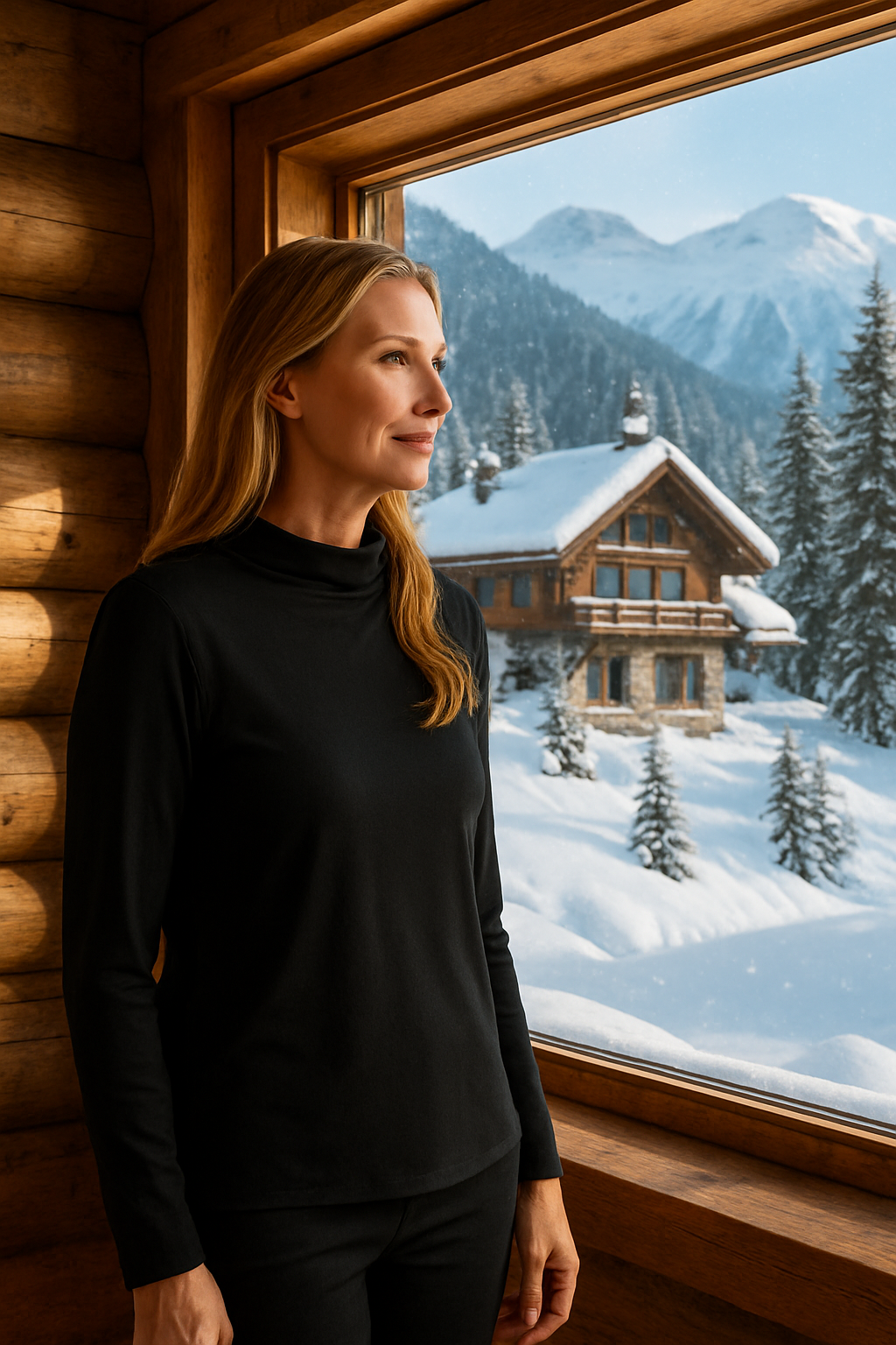 A must have for any wardrobe is the Lenora Long Sleeve Mock Neck Black Top. Crafted for a sleek and polished look, this classic piece features a subtle mock neck and a streamlined silhouette that effortlessly complements any outfit. Perfect for layering or wearing on its own, it offers timeless sophistication and versatile style for both work and social occasions.